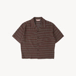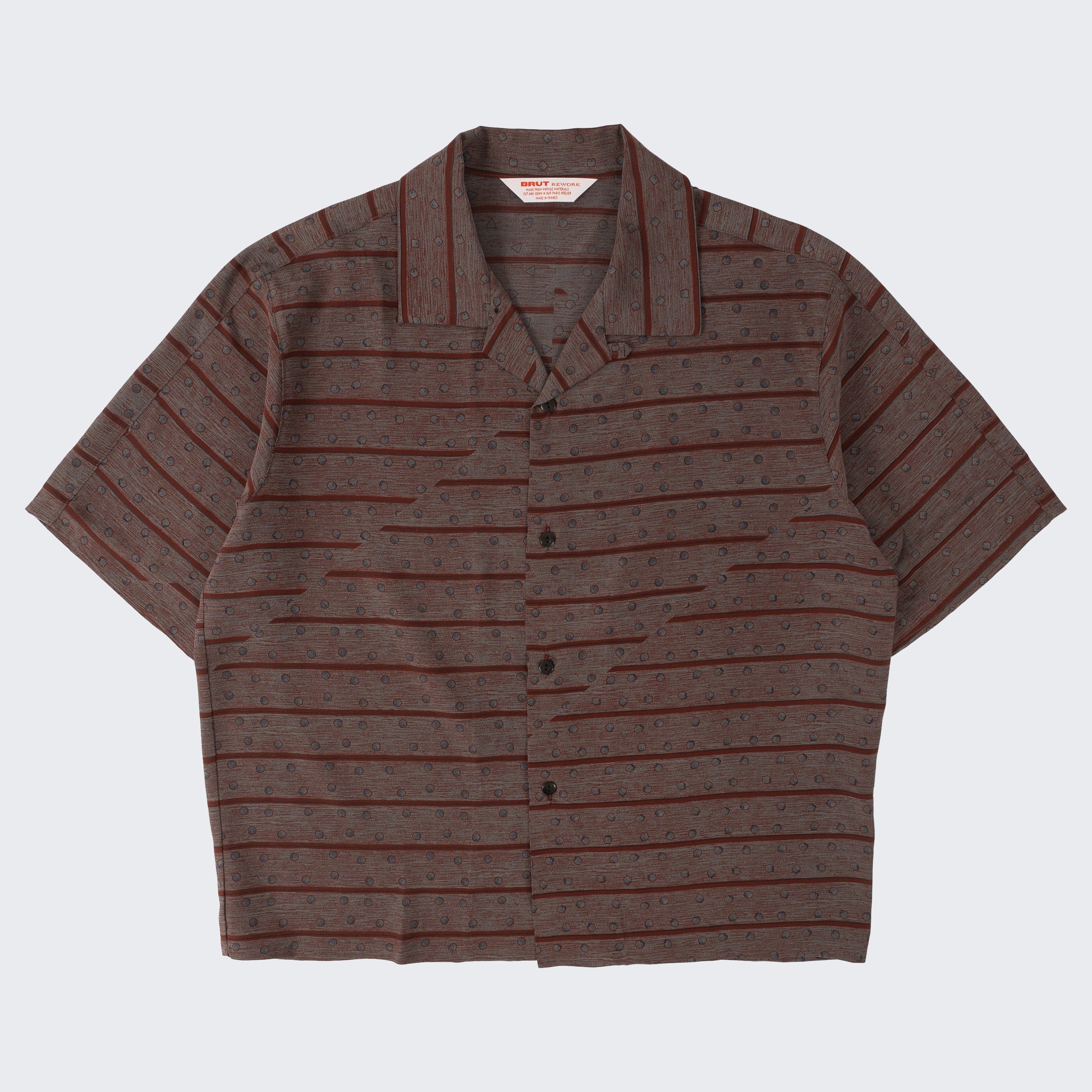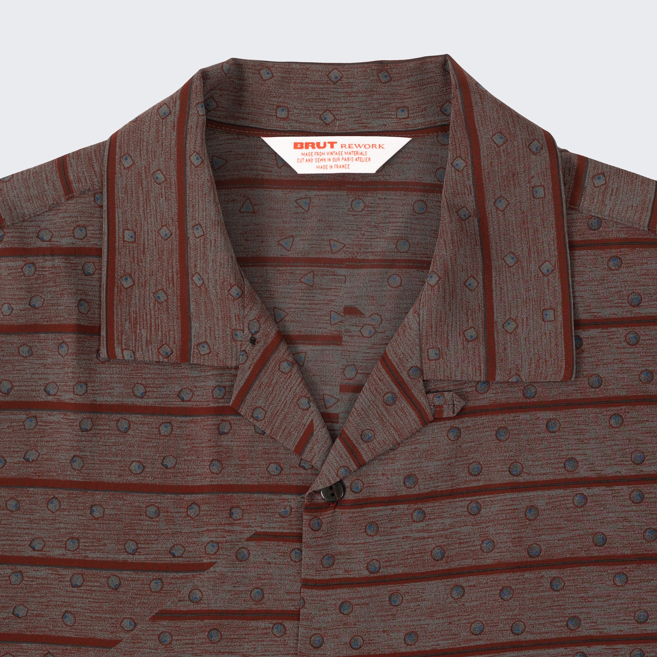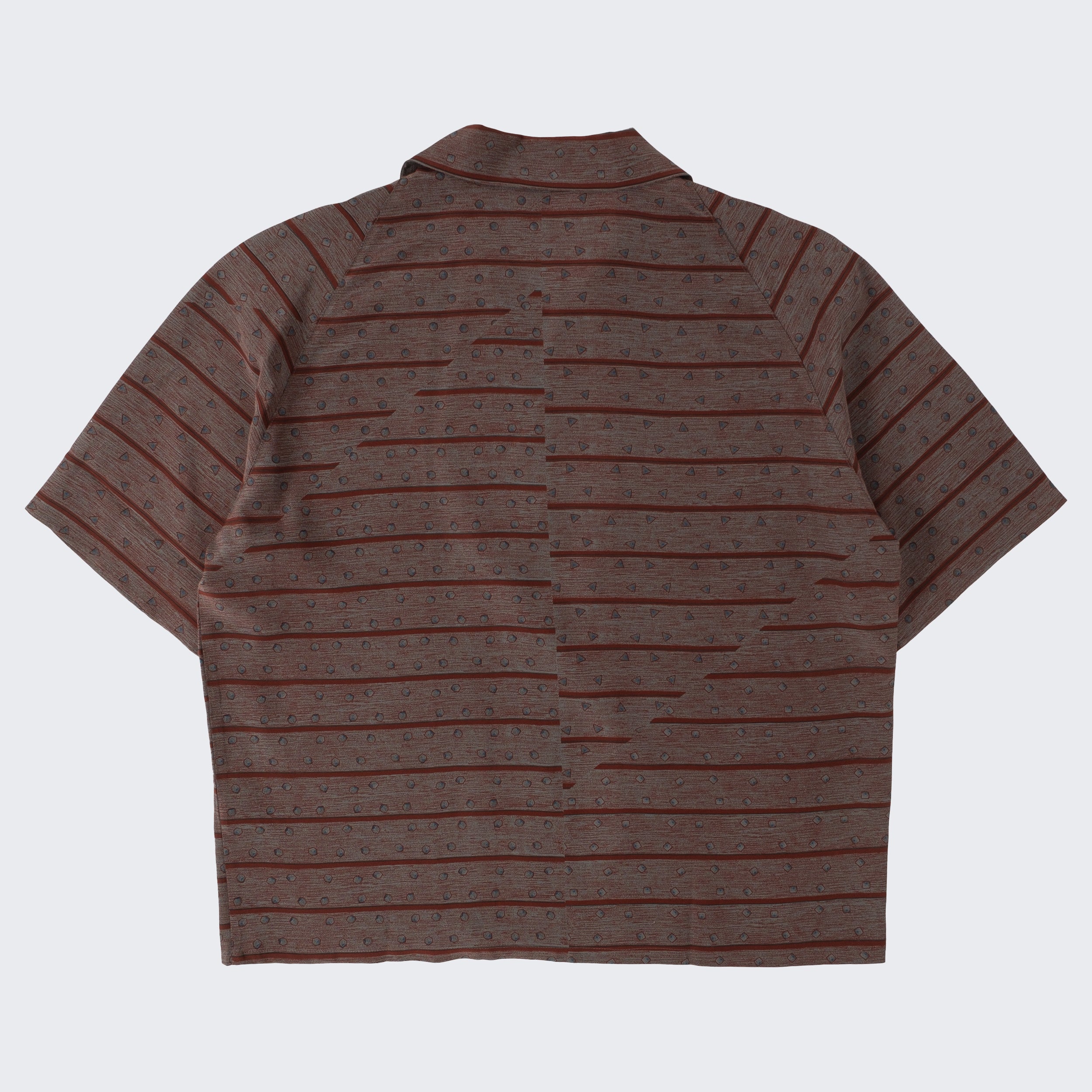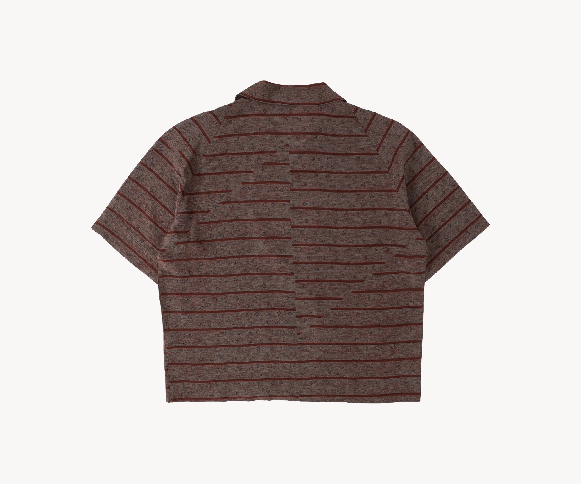 The TIE SHIRT is a mix of two rare shirts we have in our archive from the 1940's and 50's. The design consists of a short sleeves cropped shirt with a loop collar details. It is crafted from different deadstock fabrics which were intended for necktie manufacturing.