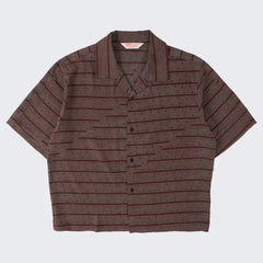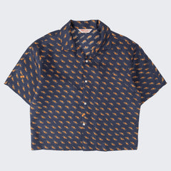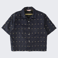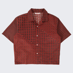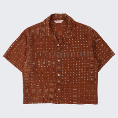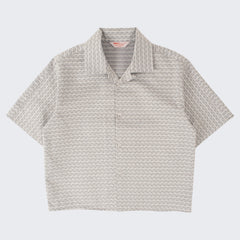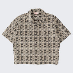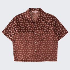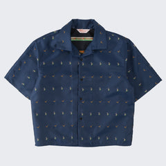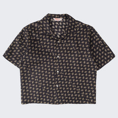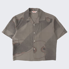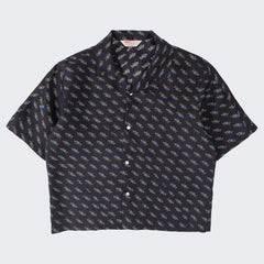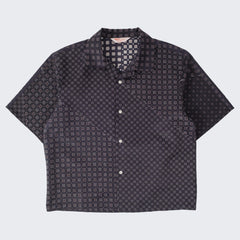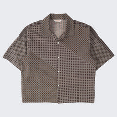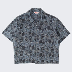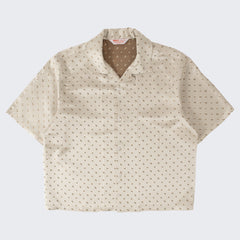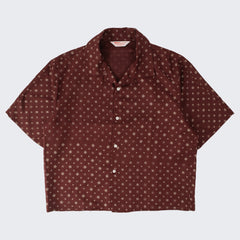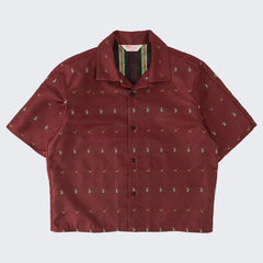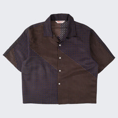 DESIGN : The TIE SHIRT is a mix of two rare shirts we have in our archive from the 1940's and 50's. The design consists of a short sleeves cropped shirt with a loop collar details. It is crafted from different deadstock fabrics which were intended for necktie manufacturing.