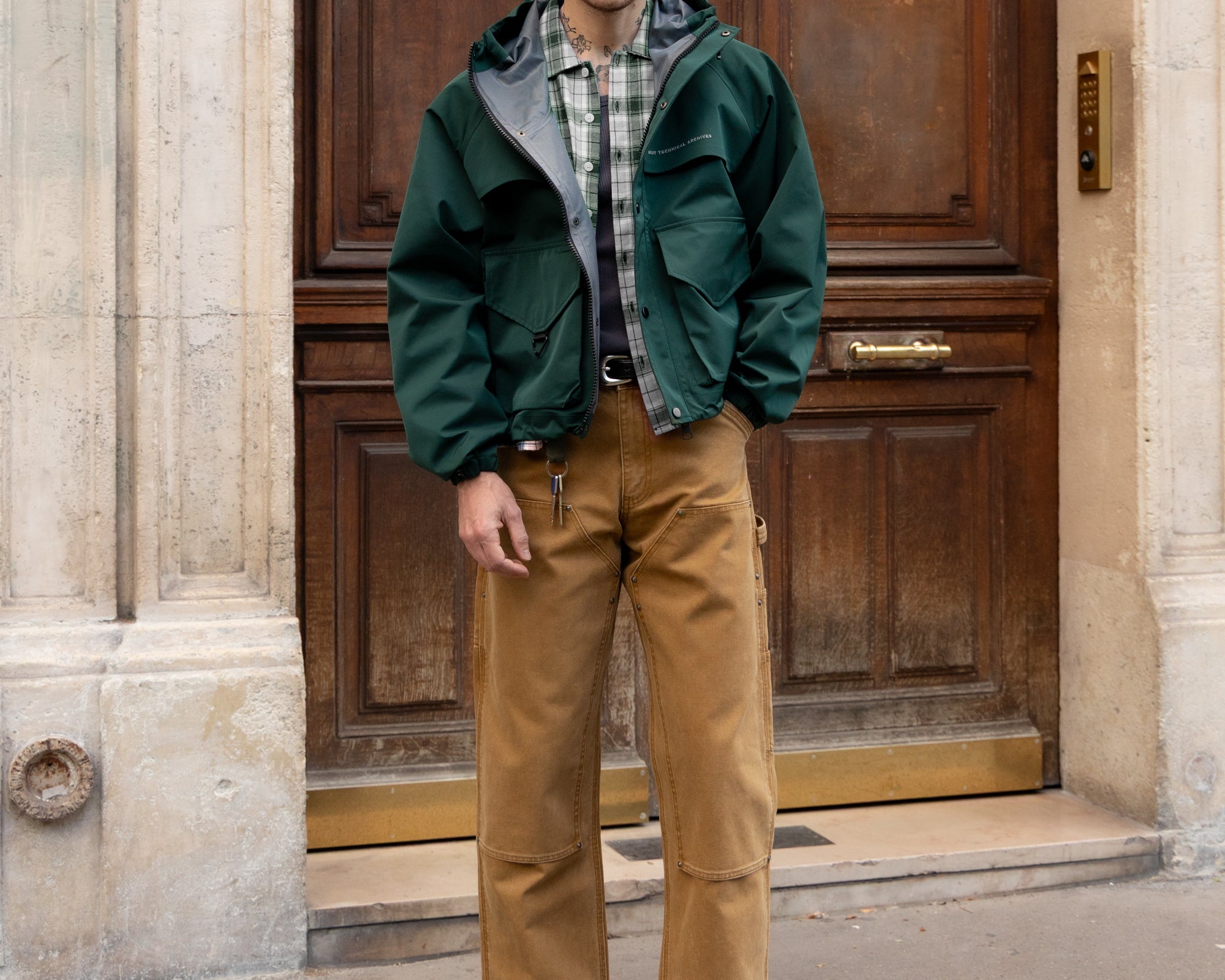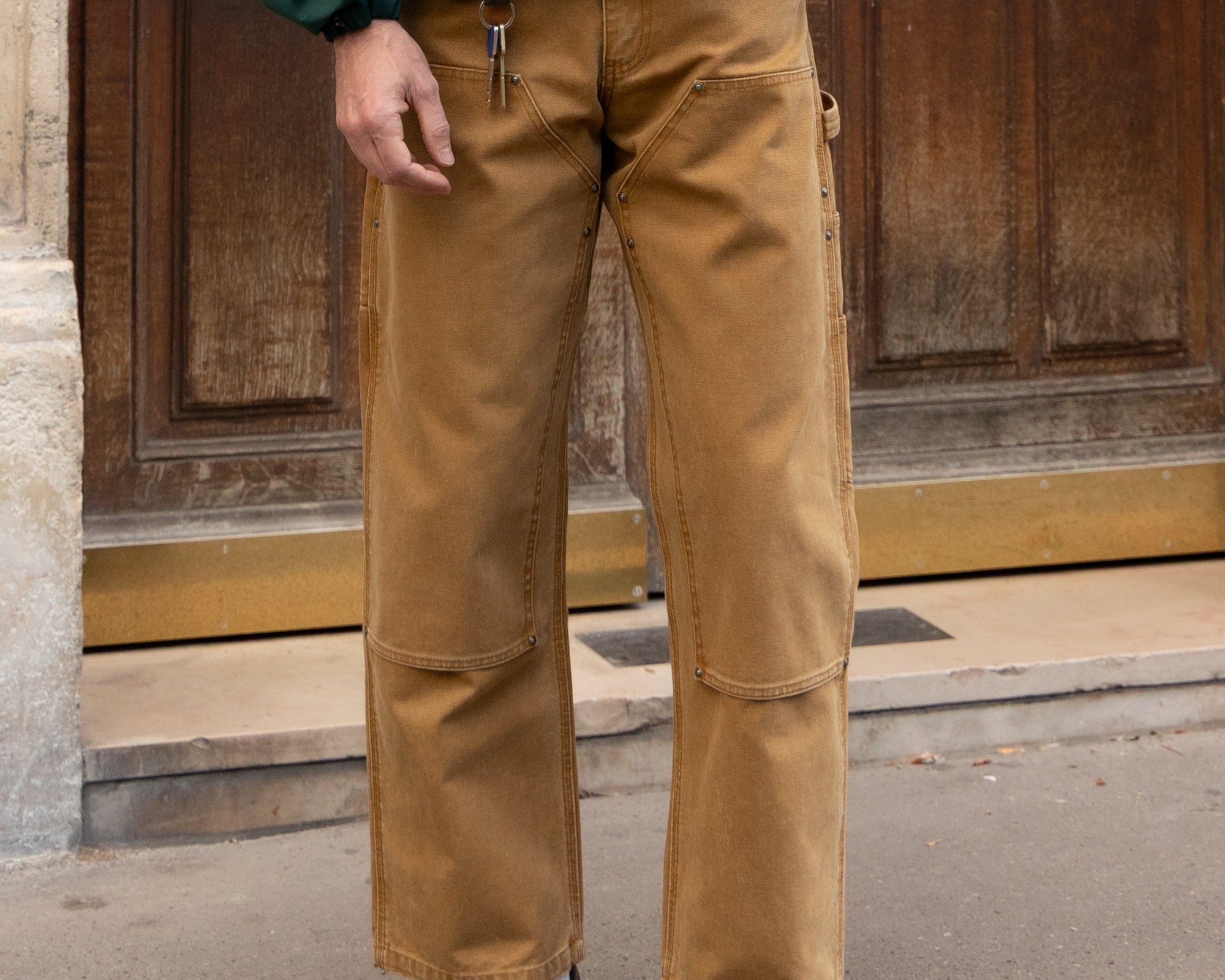 2 slanted front pockets, 1 coin pocket and 2 carpenter back pockets.