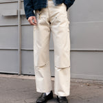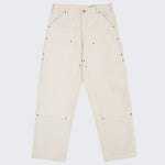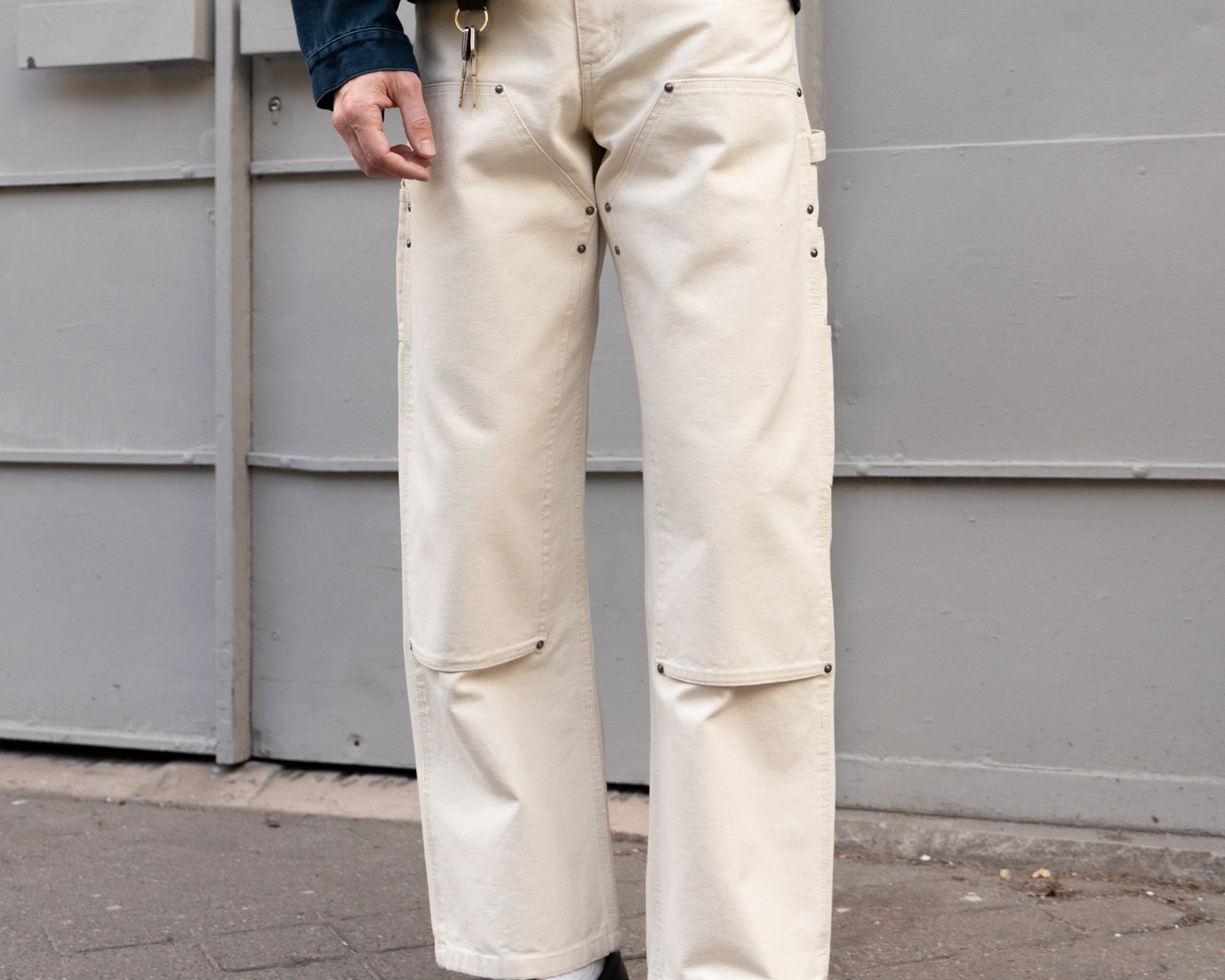 2 slanted front pockets, 1 coin pocket and 2 carpenter back pockets.