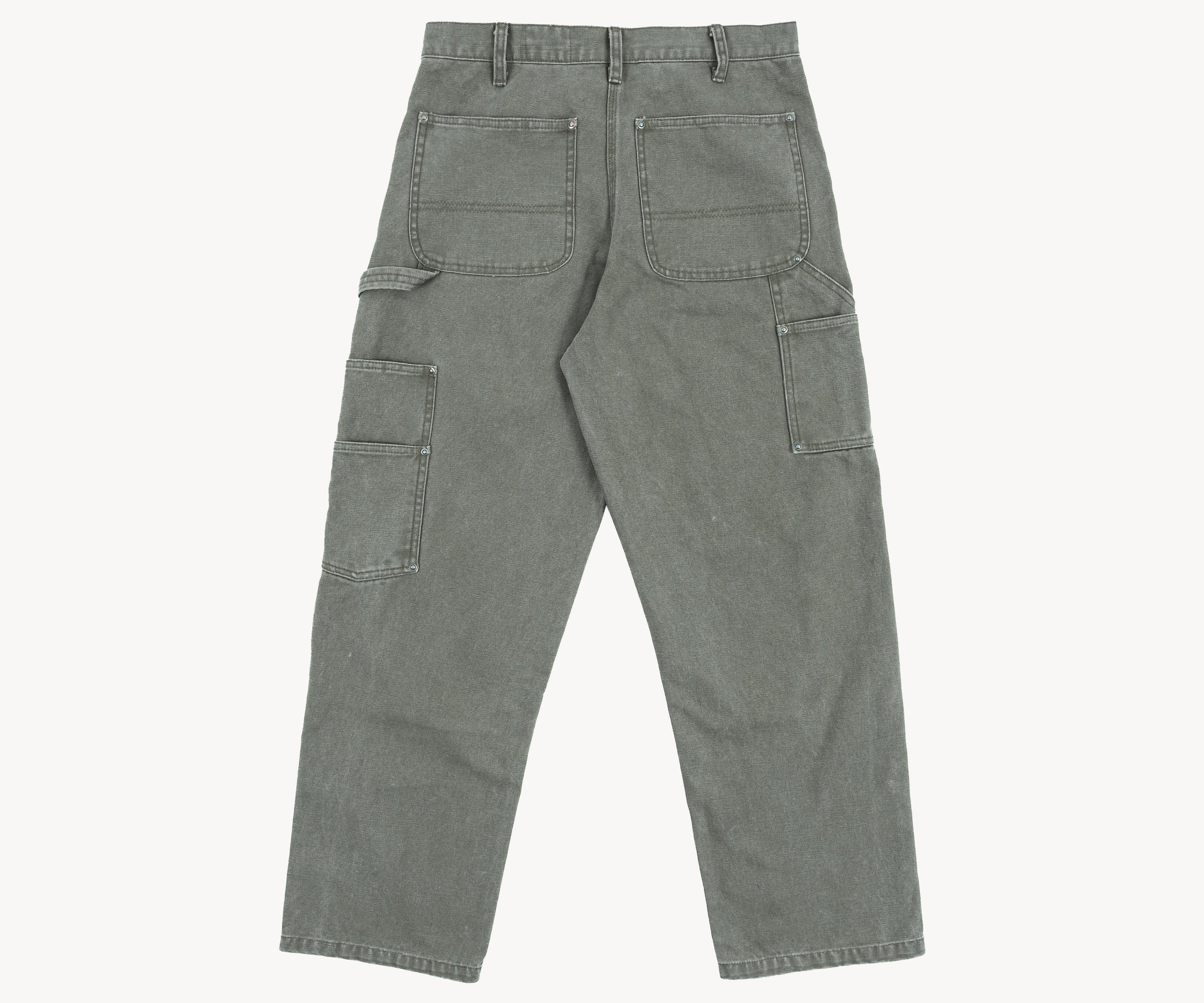2 slanted front pockets, 1 coin pocket and 2 carpenter back pockets.