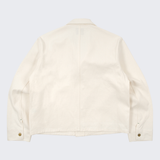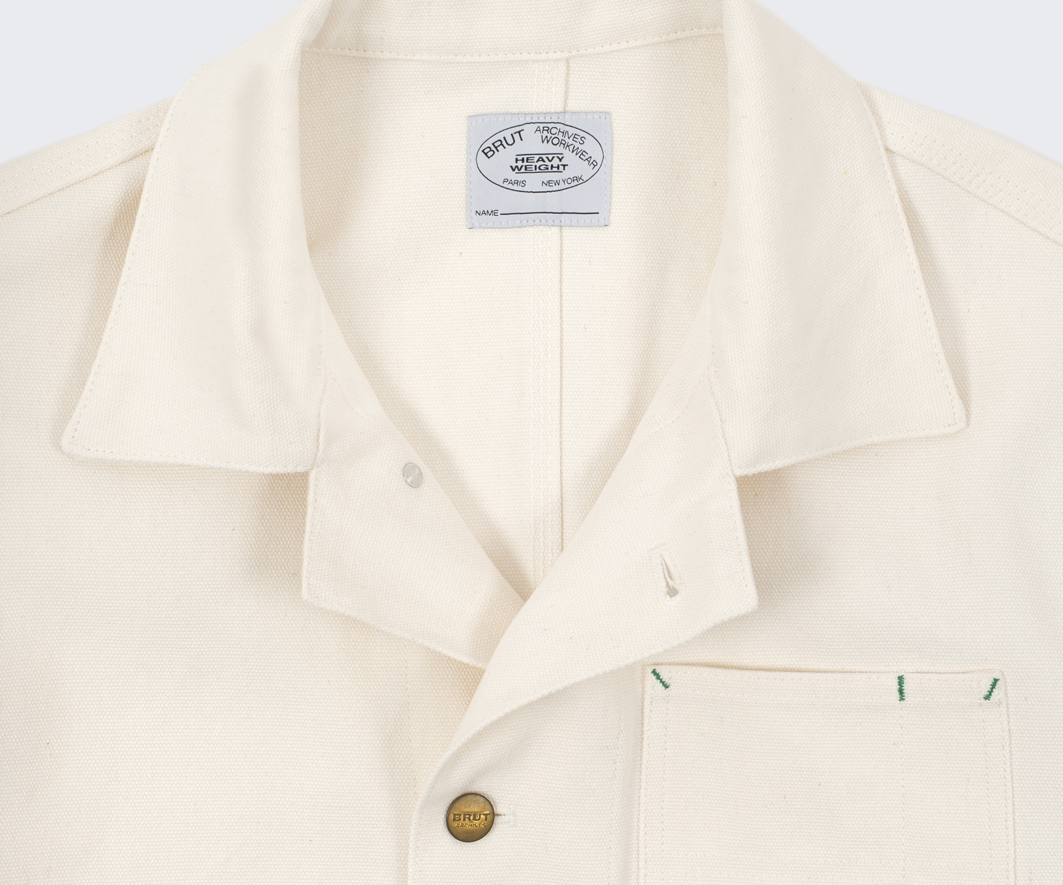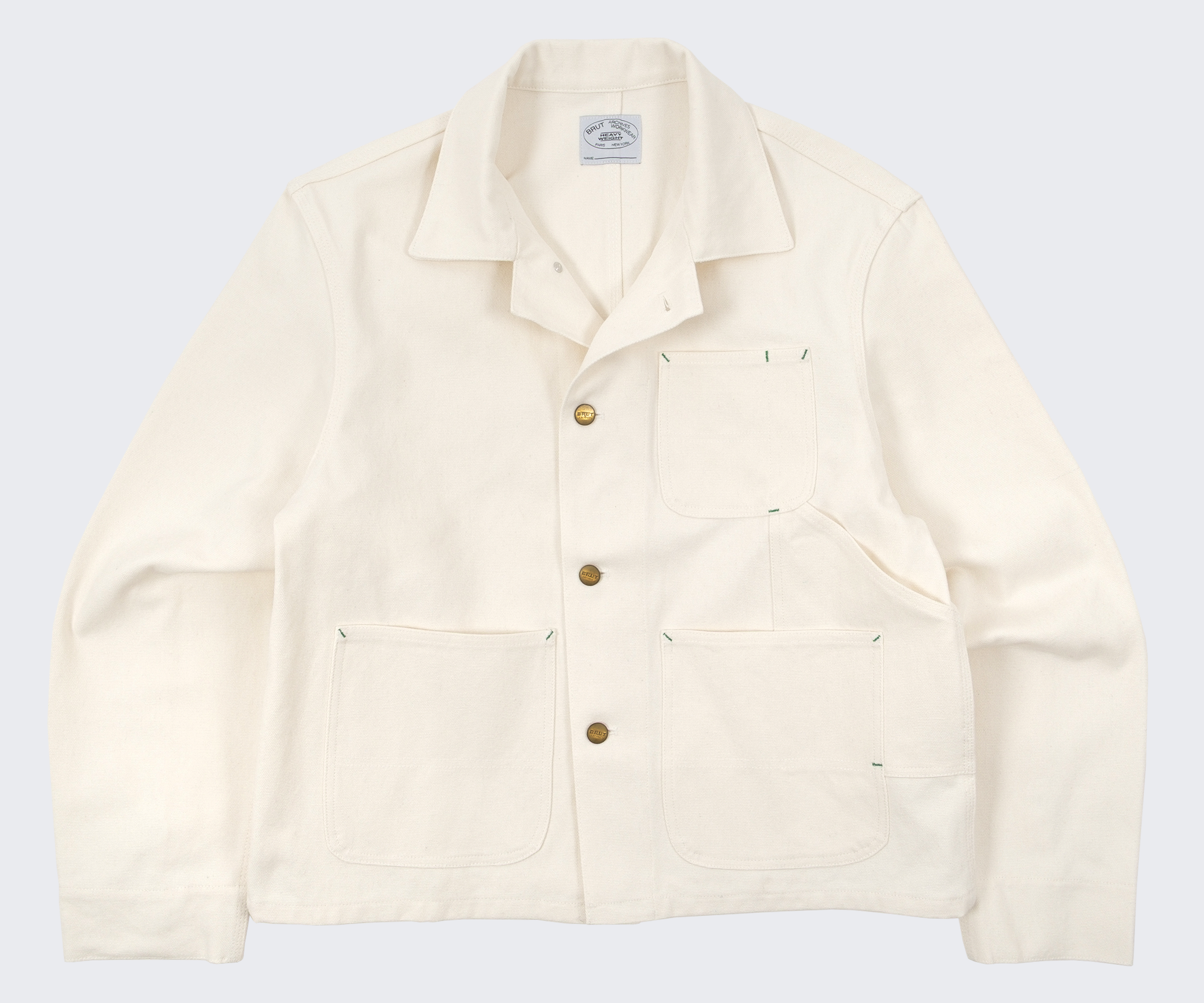 ID : The TOOL JACKET is a modern reinterpretation of the 1950s work jacket, it is made out of an heavy cotton canvas, quality hardware and triple-stitch construction in order to endure time. It features the iconic hammer pocket as a nod to vintage carpenters and double knee pants.