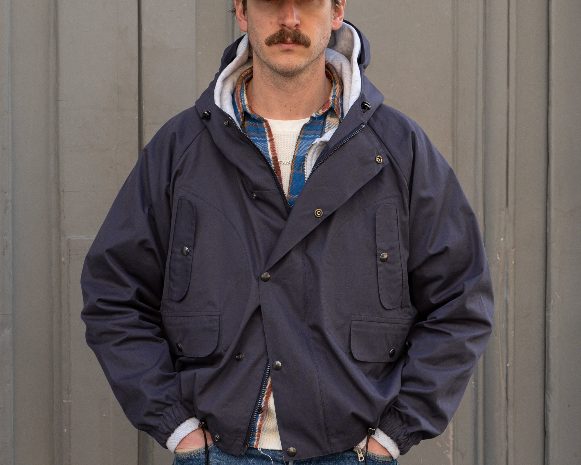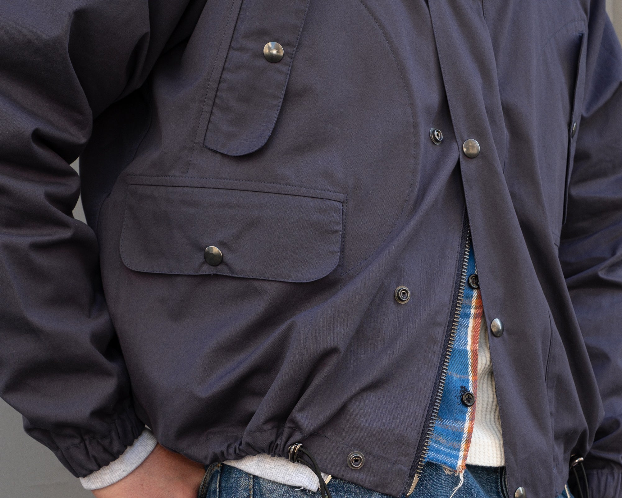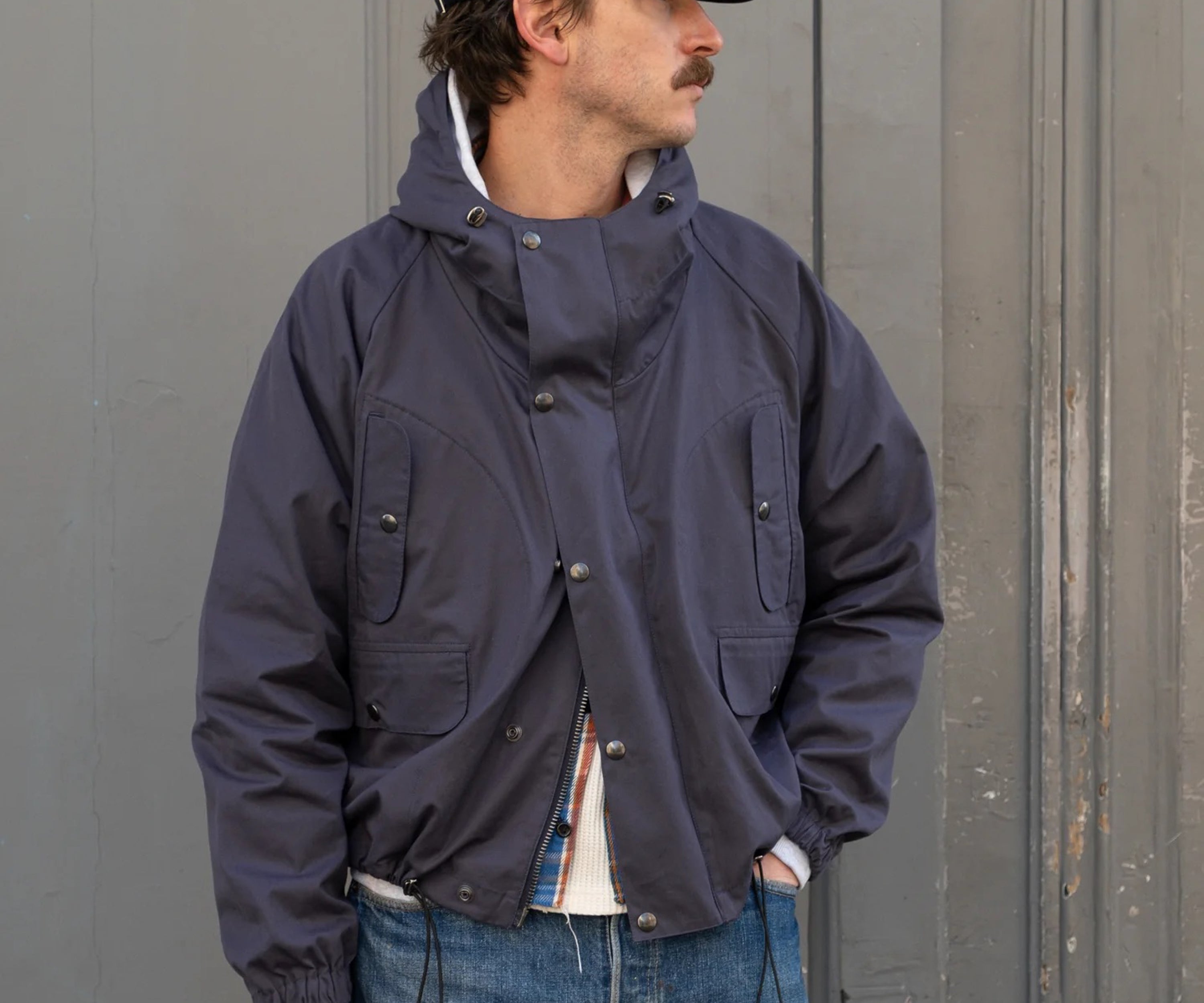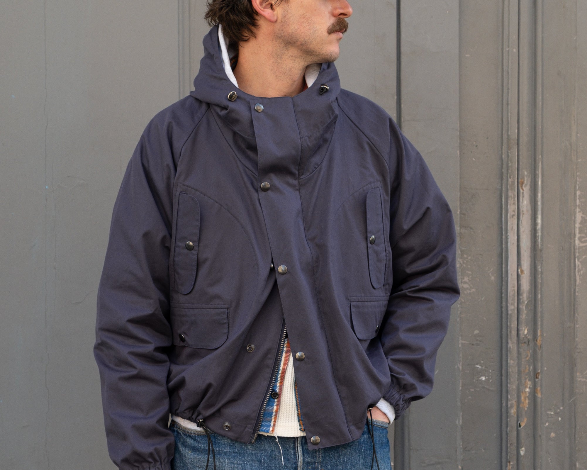 The VENTILE® WADER JACKET is crafted from VENTILE® fabric and quality hardware. To honor this legacy, all of our VENTILE® JACKET are cut and sewn with vintage equipment in our atelier in Paris.