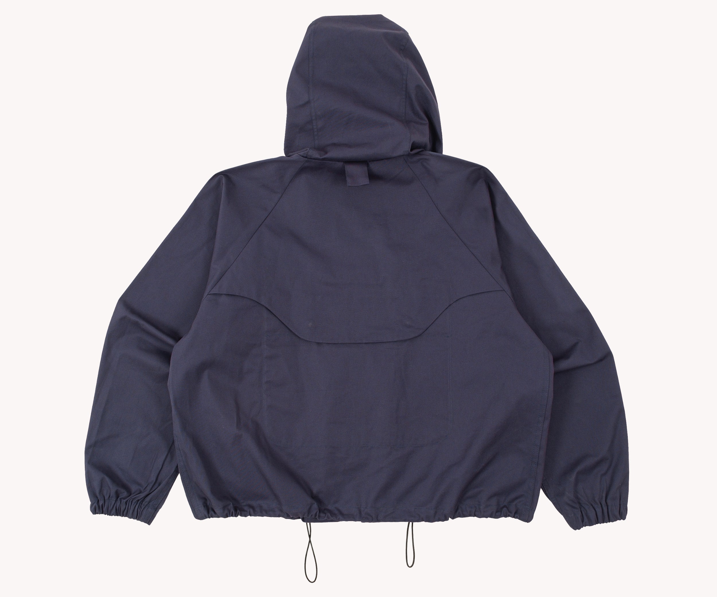 Elastic waist and hood adjuster.