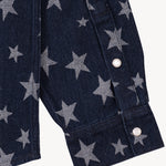The WESTERN SHIRT draws inspiration from the timeless American denim shirt, reimagined with a unique twist. Crafted from high-quality fabric, it features a bold star pattern woven into the material.