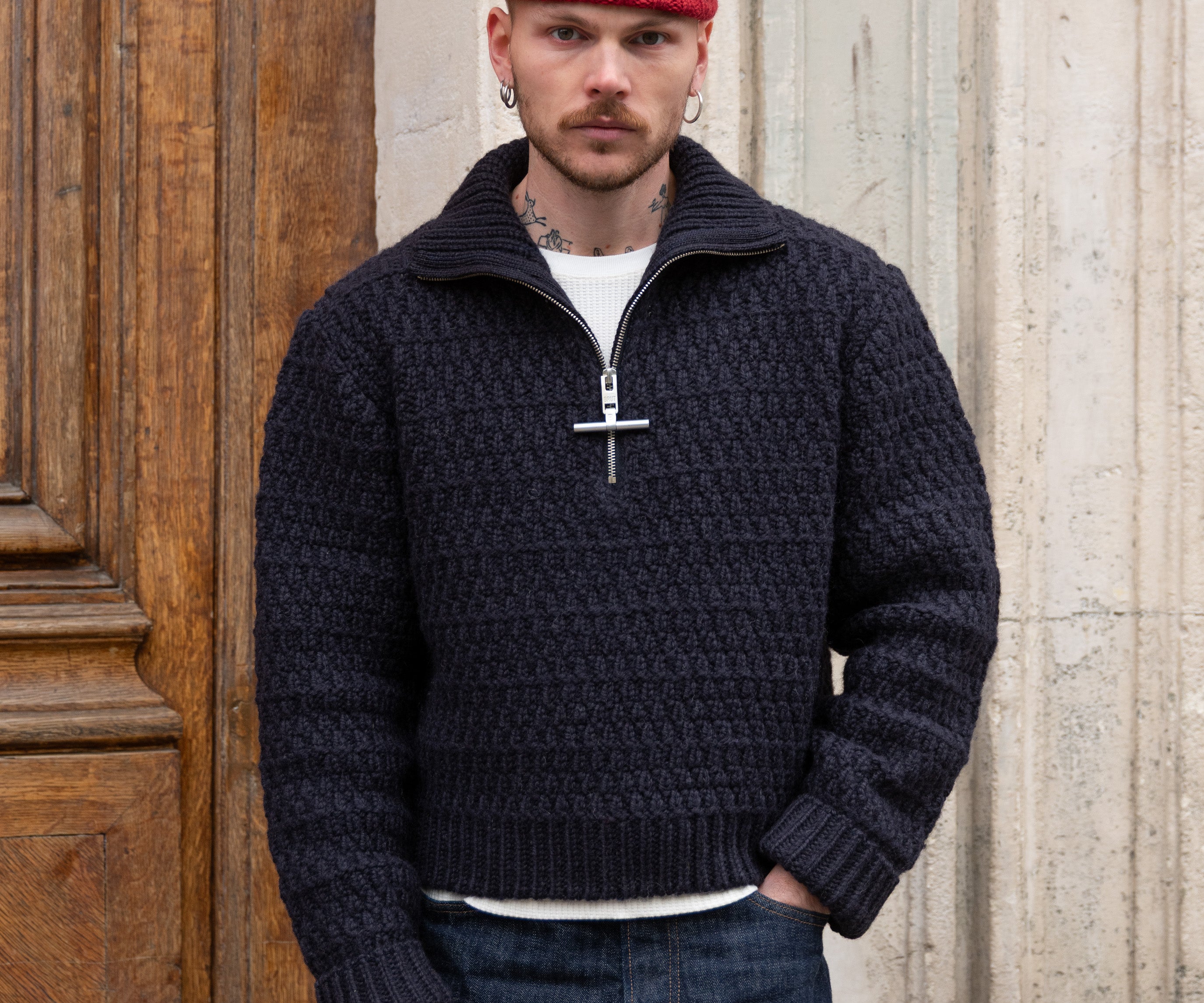Quentin is 1m82 and wears MEDIUM.