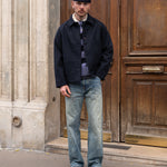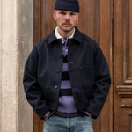 80% wool, 20% viscose. This piece is carefully handmade on vintage equipment in our Parisian atelier. Made in France.