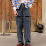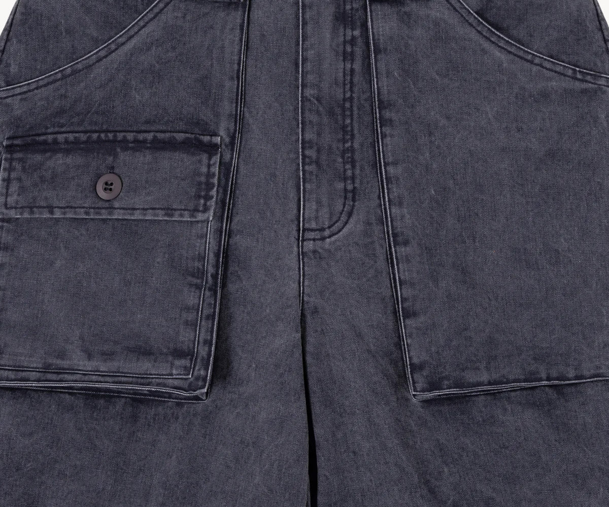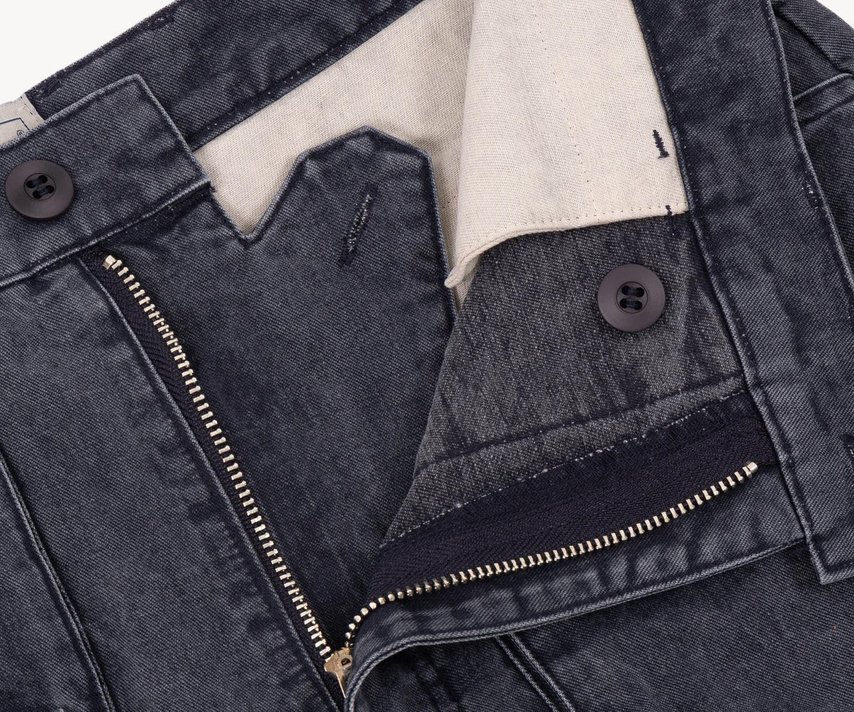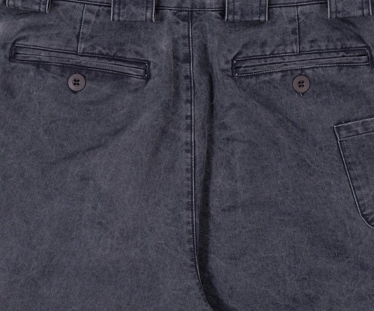 3 front patch pockets, 1 front watch pocket and 3 patch back pockets.