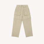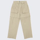 Convertible design with zip-off legs at the thighs to turn the pants into shorts.